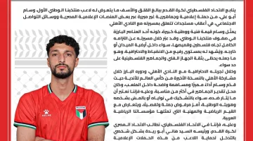 عاجل.. الاتحاد الفلسطيني يطلب من الأهلي رسميًا حماية وسام أبو علي من الاعتداءات الإعلامية
