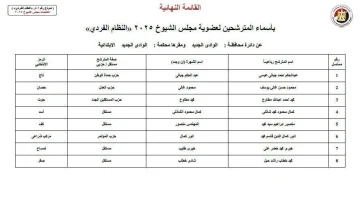 إعلان أسماء 8 مرشحين لانتخابات مجلس الشيوخ من محافظة الوادي الجديد