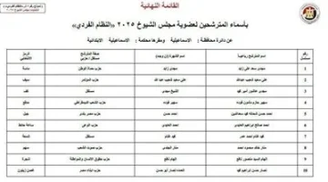 القائمة النهائية للمرشحين لمجلس الشيوخ 2025 في الإسماعيلية (نظام الفردي)