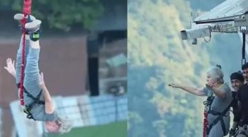 ثمانينية تقفز من ارتفاع 117 متراً بالحبال