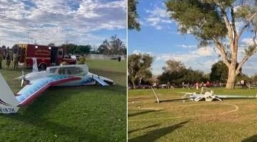 طائرة صغيرة تهبط في ملعب وتصيب امرأة